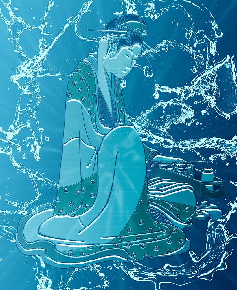 Tags: 栄松斎長喜 water 女性 人物 着物 キセル 花 芸者 舞妓 煙草 美人画 色気 色っぽい 艶 妖艶 凍り 淡い 浮世絵