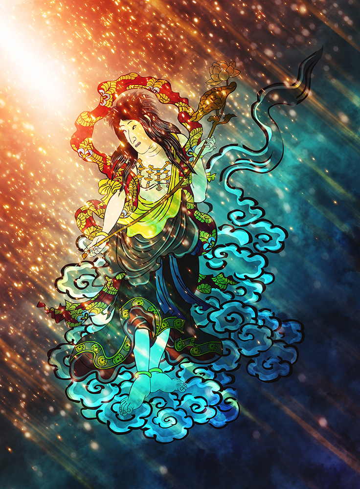 Tags: 歌川豊国 vintage 信徒 神 巫女 歌舞伎 本朝丸綱五郎成田山之御利益二而危一命ヲ助ルノ処 全身 雲 凍り 淡い 浮世絵