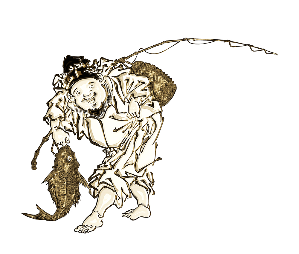 Tags: 河鍋暁斎 gold 七福神 ユーモア 僧侶 神さま 恵比寿 釣り竿 鯛 日本 幸福 髭 男性 全身 凍り 淡い 浮世絵