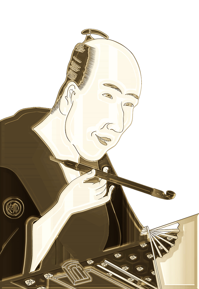 Tags: 礫川亭永理 gold 人物 男性 歌舞伎 歌舞伎役者 商人 キセル 帳簿 商売繁盛 ご主人 上半身 凍り 淡い 浮世絵