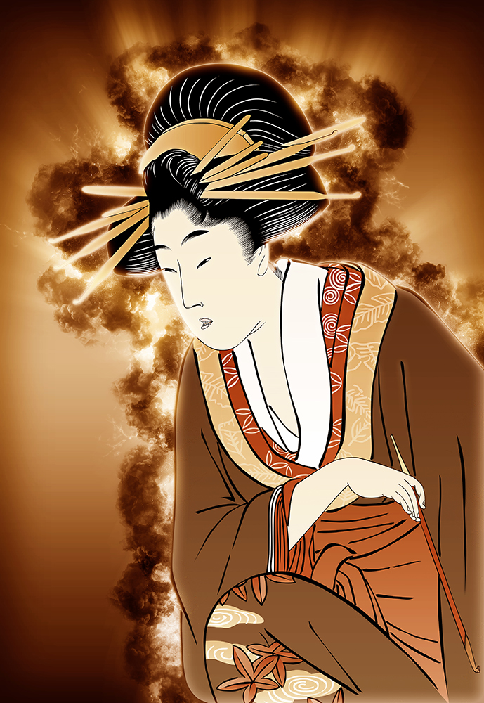 Tags: 樹下石上 vintage 女性 人物 着物 美しい キセル 芸者 舞妓 上半身 美人画 色気 色っぽい 艶 妖艶 凍り 淡い 浮世絵